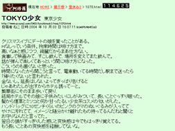 | 新潮社が運営する、ミステリー作家井上夢人のオリジナル小説の特設サイト。列車に乗り合わせた一人ひとりの視点から物語が進行する。 | クリスマスイブにデートクラブで出会った謎の少女と、もてない男の純粋な思いが切なさを呼ぶ純愛ストーリー。書籍化もされている。 | 独特な作風で人気のある作家、筒井康隆が過去に発表した短編小説を英語で読むことができる。現在読むことができる作品は9作品。 |